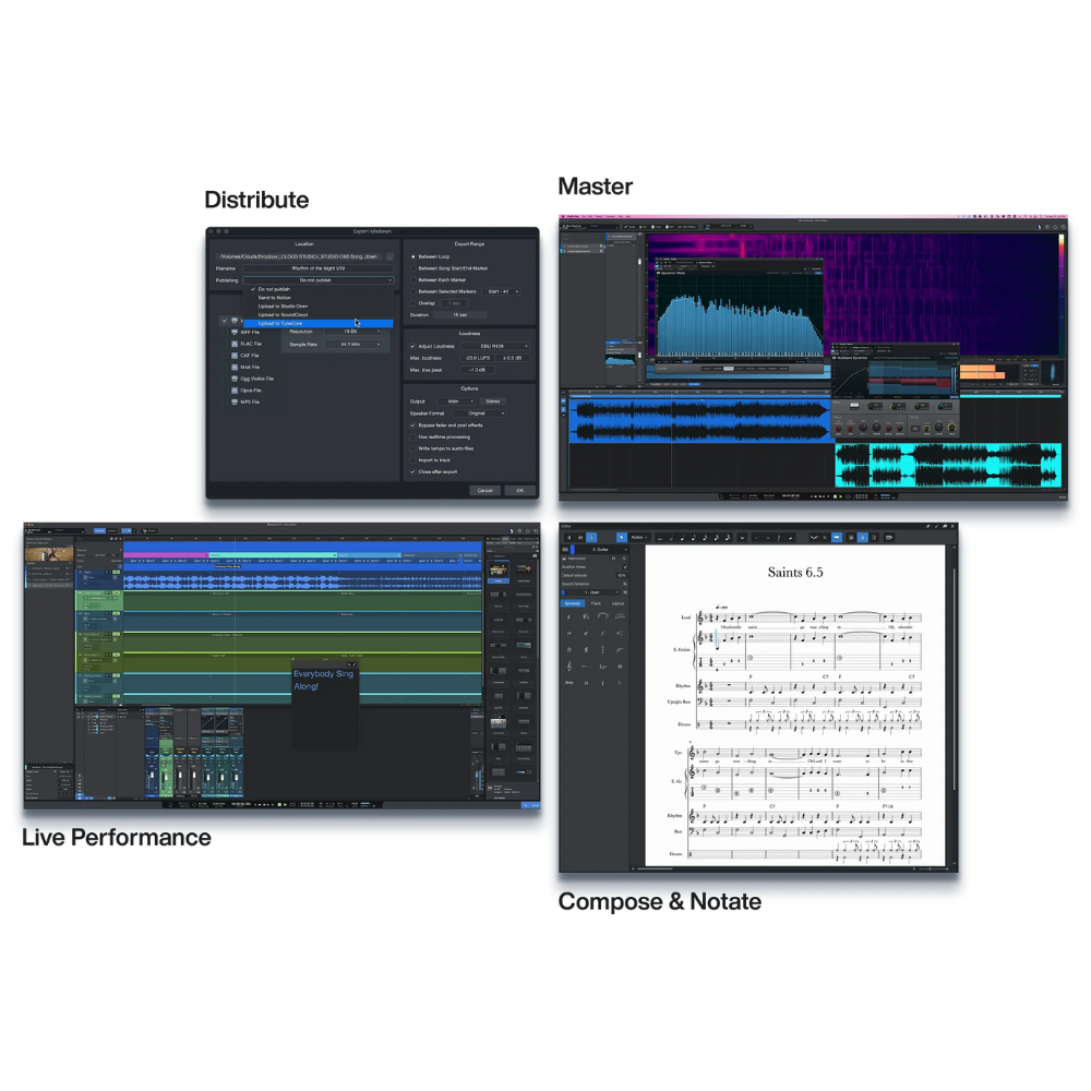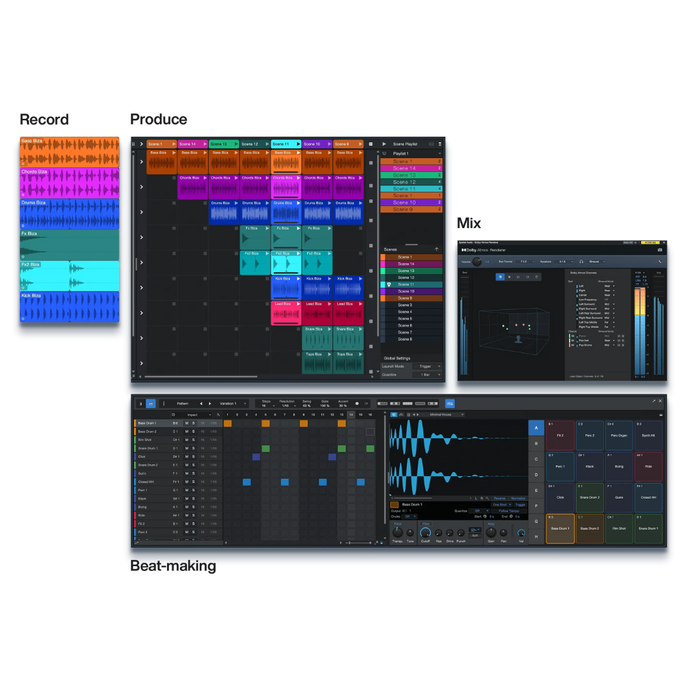 Studio One Pro 7 is the only music production software that lets you record, produce, mix, master, and perform – all in one intuitive application.