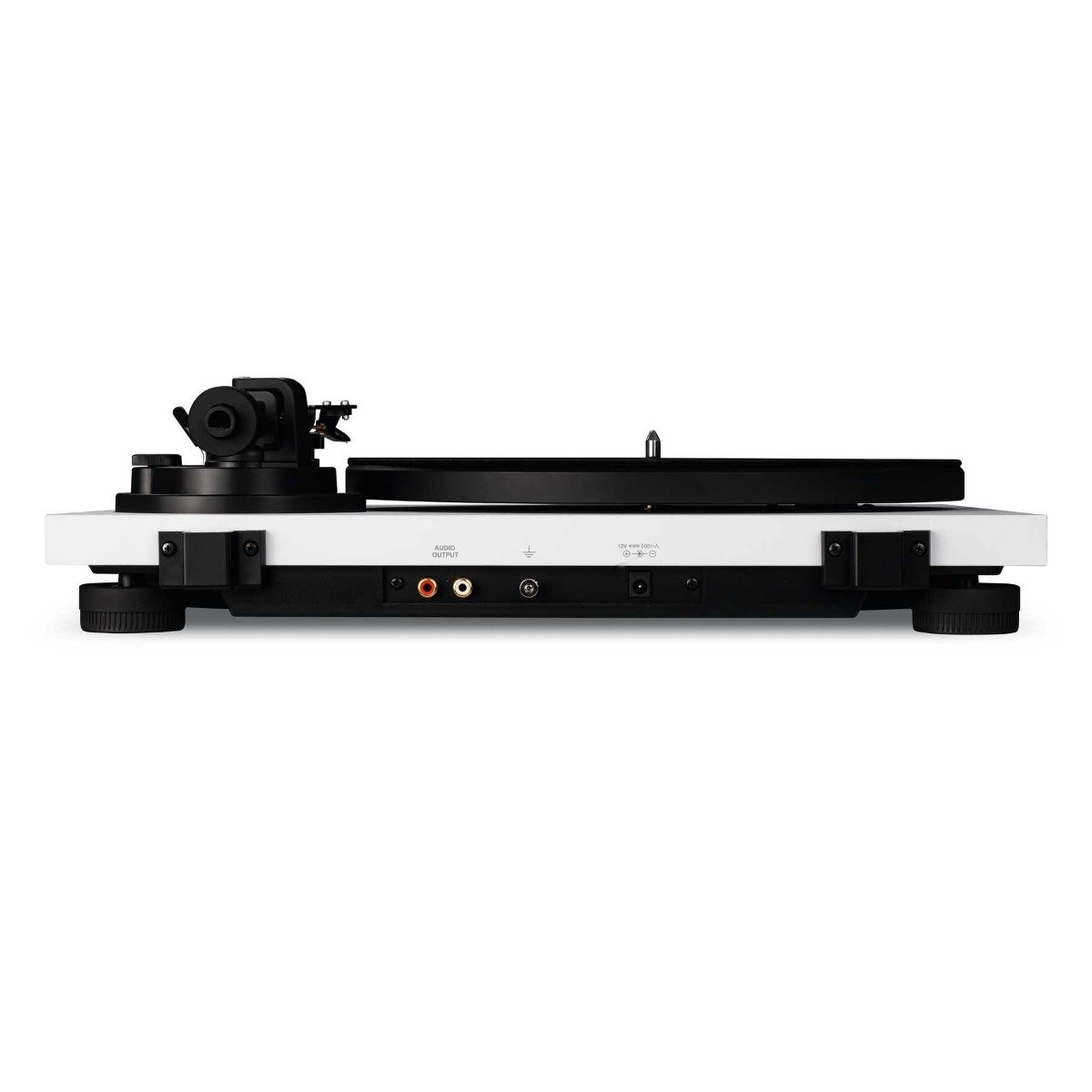 Alongside the connection for the external DC power supply, the rear of the TURN 2 features two gold-plated, corrosion-resistant RCA connections and a separate earth connection to prevent the possibility of ground loops. All cable connections are removable, allowing for easy replacement or later upgrade. The heavy MDF plinth has an extremely slimline design and is available in a matt black, red or white finish. A high-inertia die cast aluminium platter with chrome edging harmoniously rounds off the elegant design of the TURN 2.